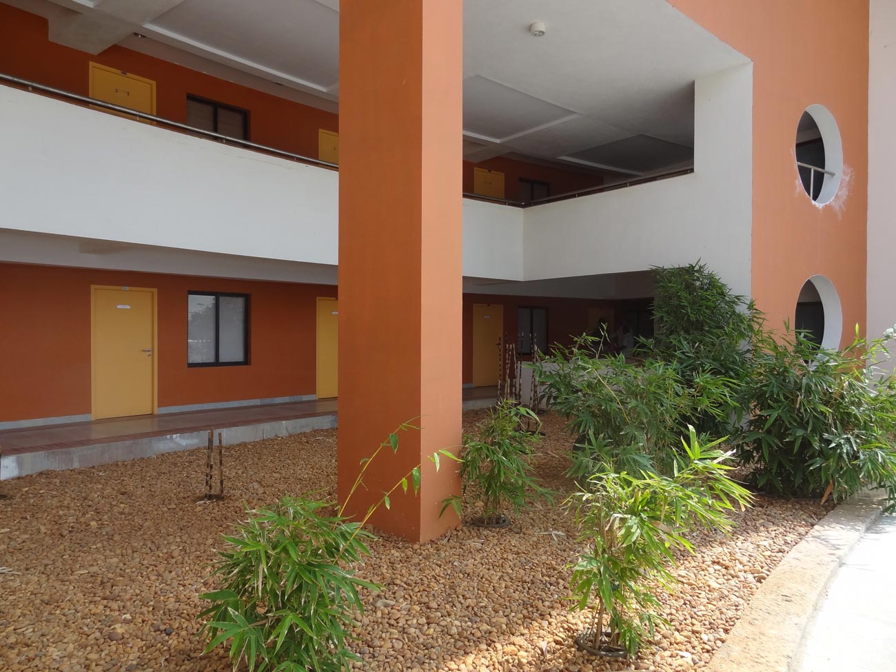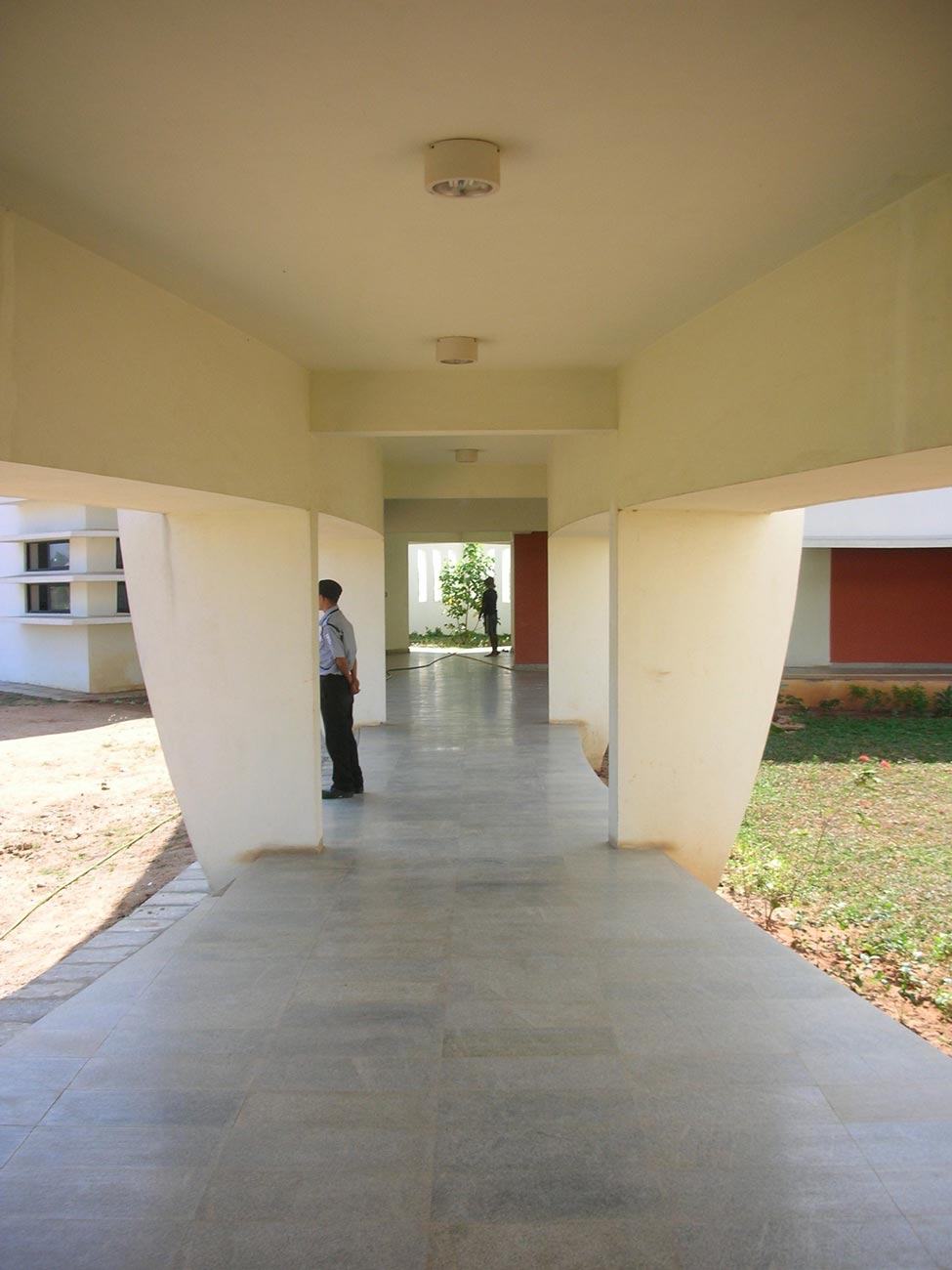 Climatically the use of burnt clay bricks as the infill panel wall reduces heat gain which is further modulated by adequate cross ventilation vital to the humid climate.